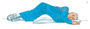 Για να αδειάσετε το μπροστινό μέρος των πνευμόνων σας, βρίσκονται σε μια κεκλιμένη επιφάνεια, έτσι ώστε το στήθος σας είναι χαμηλότερα από τους γοφούς σας. Τοποθετήστε ένα μικρό μαξιλάρι κάτω από το κεφάλι σας και δύο μαξιλάρια κάτω από τα γόνατά σας. Ξαπλώστε με τα γόνατα λυγισμένα πάνω από τα μαξιλάρια. Ακουμπήστε τα χέρια σας στα πλευρά σας και αναπνεύστε χρησιμοποιώντας διαφραγματική αναπνοή.