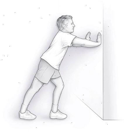 Σταθείτε μπροστά από έναν τοίχο. Τεντώστε τα χέρια σας, έτσι ώστε οι παλάμες σας είναι επίπεδη στον τοίχο και τους αγκώνες σας είναι σχεδόν ευθεία. Κρατώντας το δεξί γόνατο σας ελαφρώς λυγισμένα, ένα βήμα πίσω ένα πόδι ή δύο με το αριστερό πόδι σας, τη φτέρνα και το πόδι επίπεδα στο πάτωμα. Κρατήστε για 20 έως 30 δευτερόλεπτα. Τώρα λυγίζετε το αριστερό γόνατό σας, ενώ ακόμα κρατώντας τη φτέρνα και το πόδι επίπεδα στο πάτωμα. Θα πρέπει να αισθάνεστε αυτά τα τμήματα στην κνήμη και αχίλλειο τένοντα? Αν δεν αισθάνεστε ένα τέντωμα, μετακινήστε το πόδι σας προς τα πίσω λίγο μακρύτερα. Κρατήστε για 20 έως 30 δευτερόλεπτα. Αλλάξτε πόδια και επαναλάβετε. |