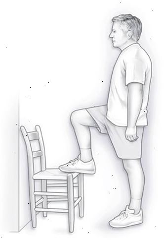 Σταθείτε αρκετά μακριά πίσω από μια καρέκλα, έτσι ώστε να μπορεί να κρατήσει το πίσω μέρος του με τα δύο χέρια και να πέφτουν στα ισχία σας μέχρι κορμός σας να είναι παράλληλο με το πάτωμα. Προσπαθήστε να κρατήσετε την πλάτη και τους ώμους σας ίσια, έτσι ώστε να αισθανθείτε το τέντωμα στο πίσω μέρος των μηρών σας. Κρατήστε τη θέση για 20 έως 30 δευτερόλεπτα. |