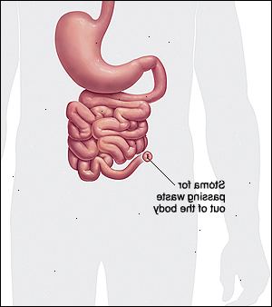 Τότε ο γιατρός σχηματίζει ένα στόμιο (το μικρό έντερο είναι ραμμένο σε ένα άνοιγμα στο κοιλιακό τοίχωμα για να αφήσει απόβλητα εξέρχονται του σώματος).